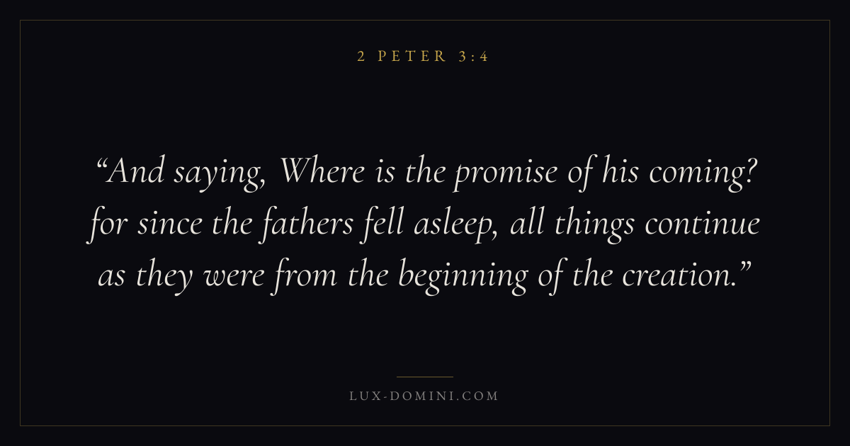 And saying, Where is the promise of his coming? for since the fathers fell asleep, all things continue as they were from the beginning of the creation.