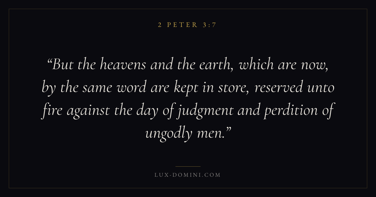 But the heavens and the earth, which are now, by the same word are kept in store, reserved unto fire against the day of judgment and perdition of ungodly men.