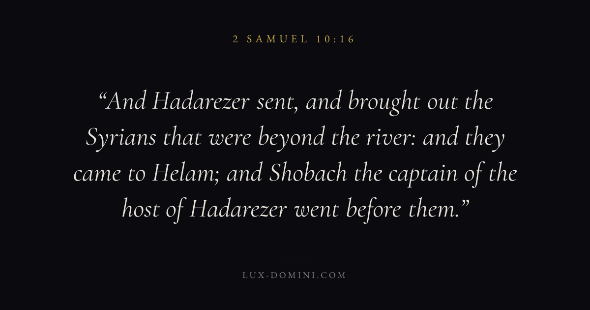 And Hadarezer sent, and brought out the Syrians that were beyond the river: and they came to Helam; and Shobach the captain of the host of Hadarezer went before them.