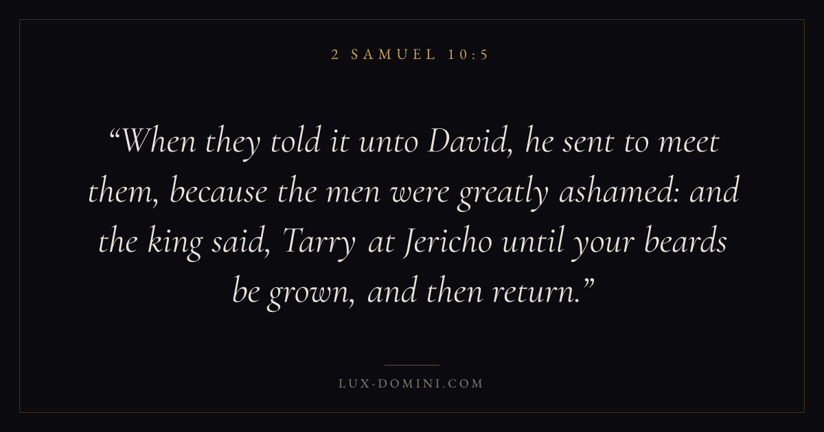 When they told it unto David, he sent to meet them, because the men were greatly ashamed: and the king said, Tarry at Jericho until your beards be grown, and then return.