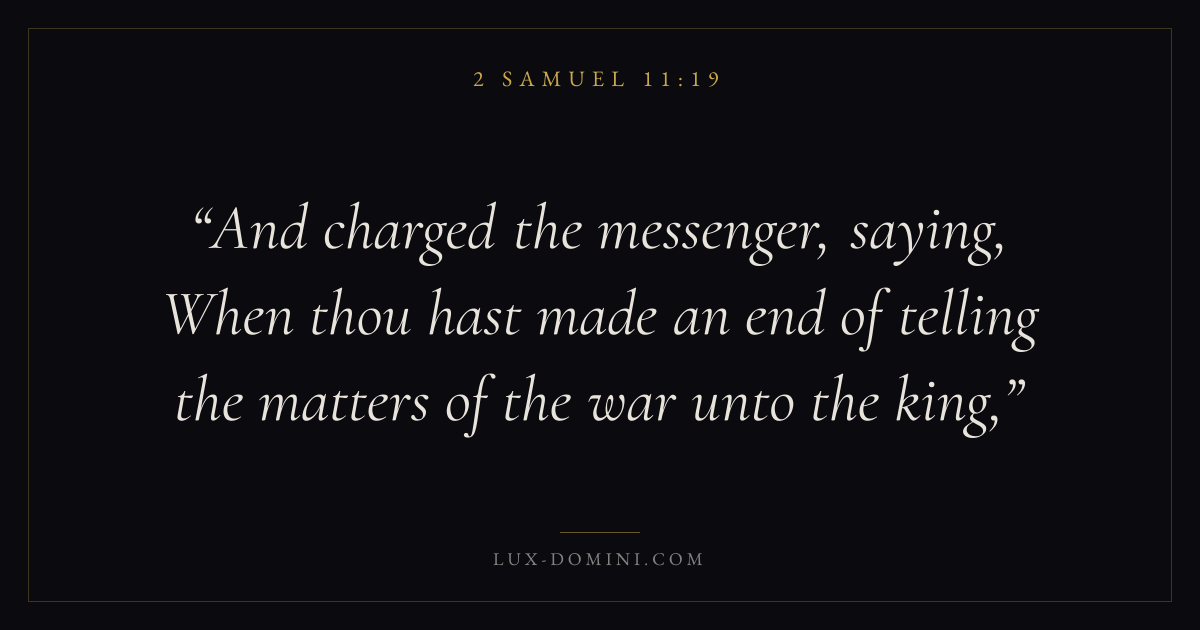 And charged the messenger, saying, When thou hast made an end of telling the matters of the war unto the king,