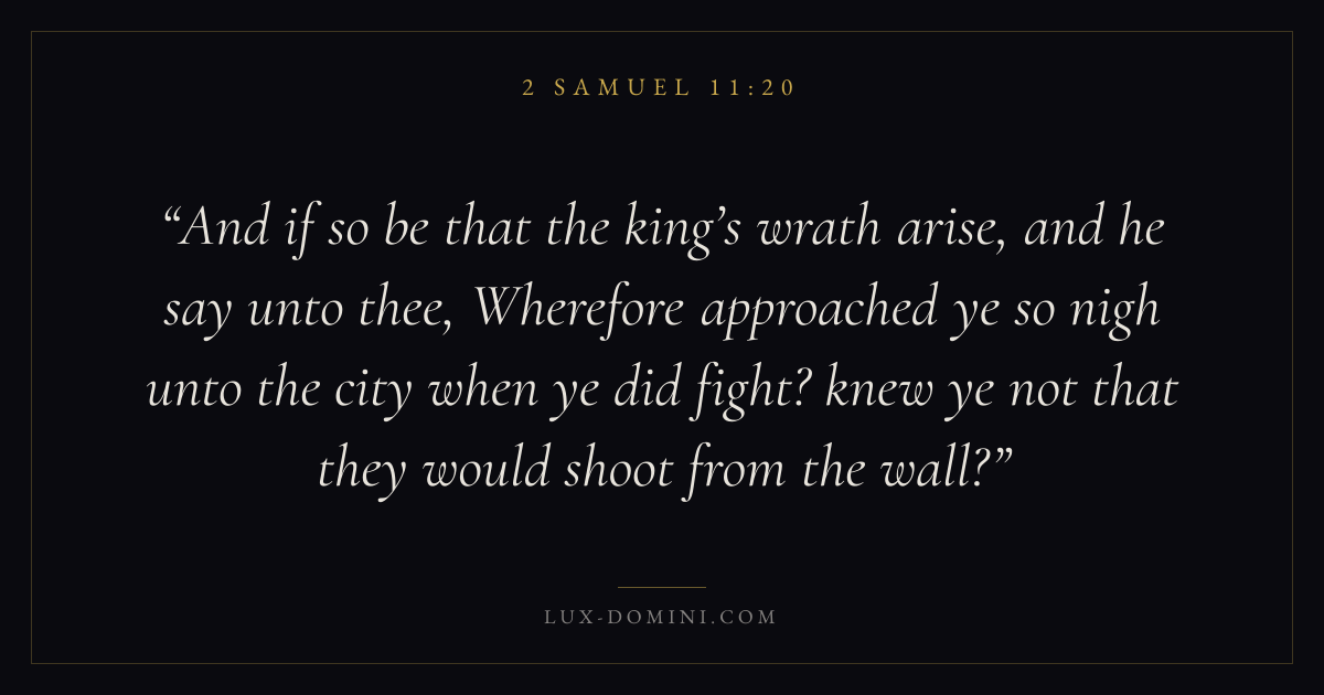 And if so be that the king’s wrath arise, and he say unto thee, Wherefore approached ye so nigh unto the city when ye did fight? knew ye not that they would shoot from the wall?