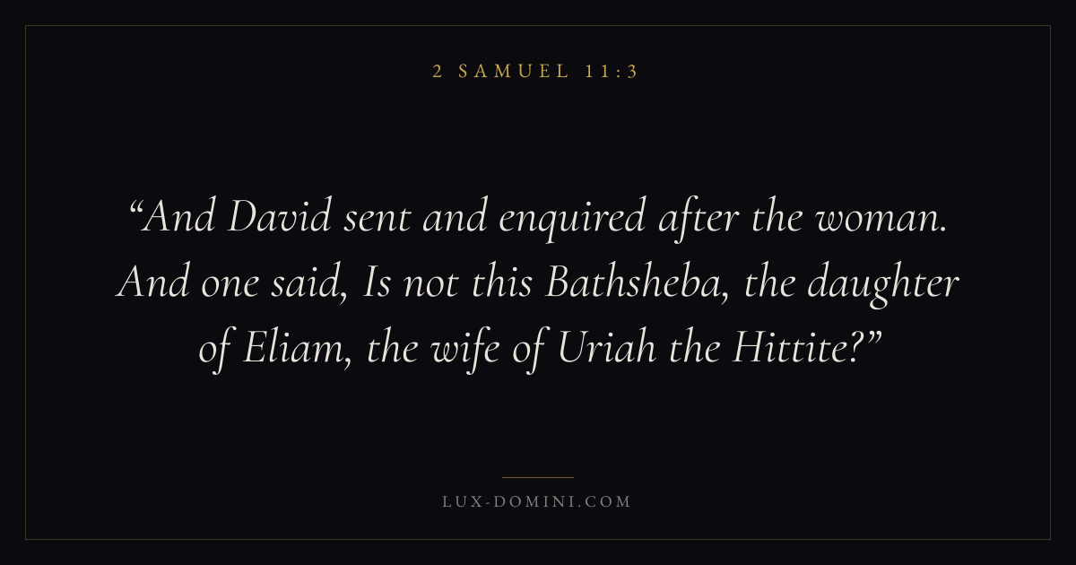 And David sent and enquired after the woman. And one said, Is not this Bathsheba, the daughter of Eliam, the wife of Uriah the Hittite?