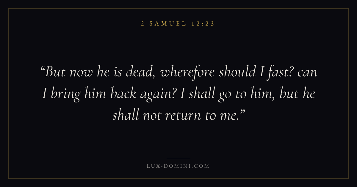 But now he is dead, wherefore should I fast? can I bring him back again? I shall go to him, but he shall not return to me.