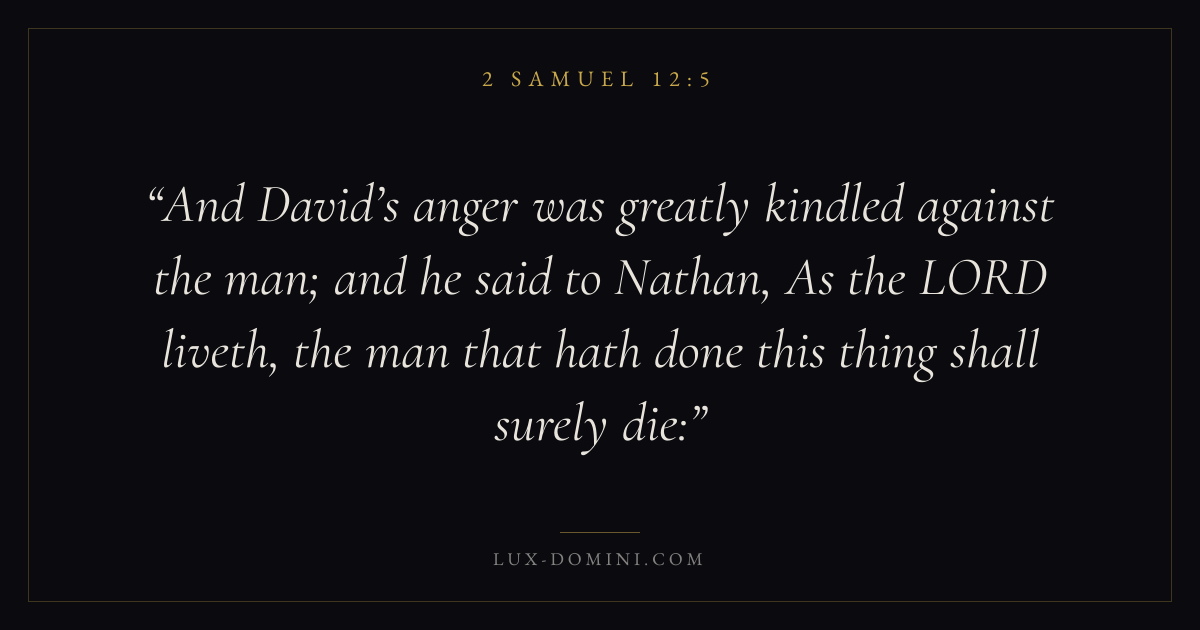 And David’s anger was greatly kindled against the man; and he said to Nathan, As the LORD liveth, the man that hath done this thing shall surely die: