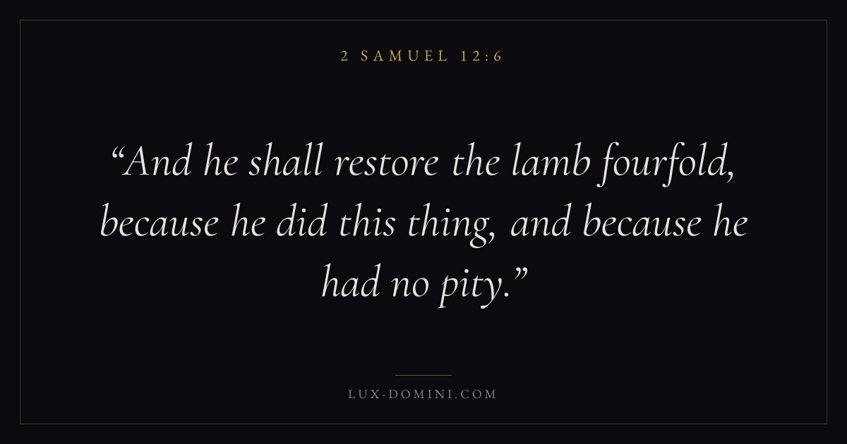 And he shall restore the lamb fourfold, because he did this thing, and because he had no pity.