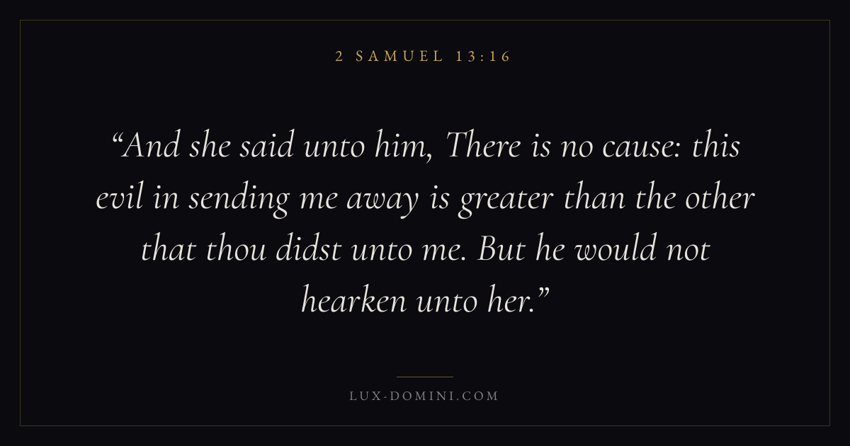 And she said unto him, There is no cause: this evil in sending me away is greater than the other that thou didst unto me. But he would not hearken unto her.