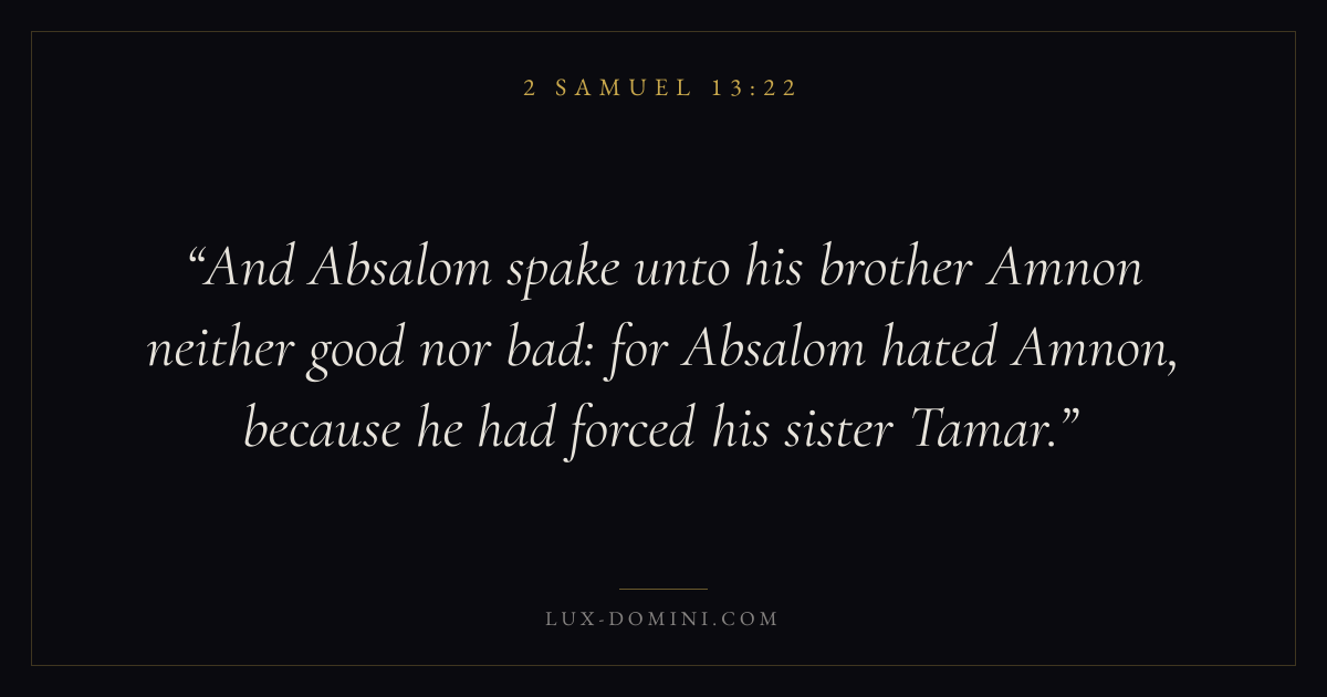 And Absalom spake unto his brother Amnon neither good nor bad: for Absalom hated Amnon, because he had forced his sister Tamar.