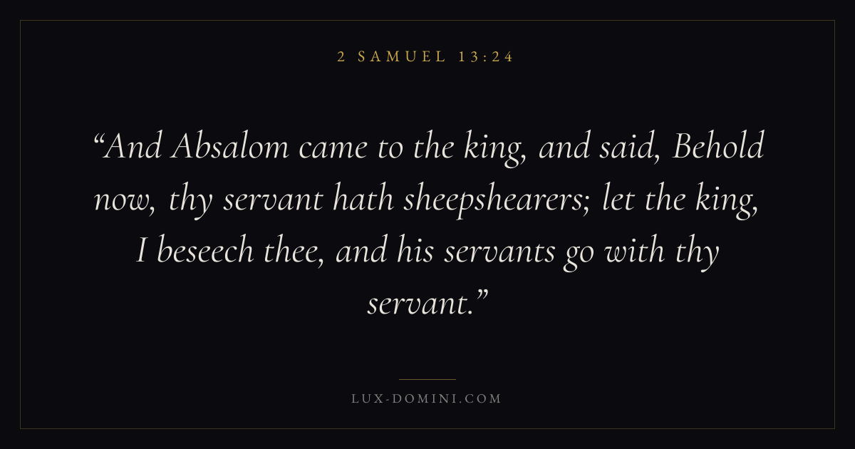 And Absalom came to the king, and said, Behold now, thy servant hath sheepshearers; let the king, I beseech thee, and his servants go with thy servant.