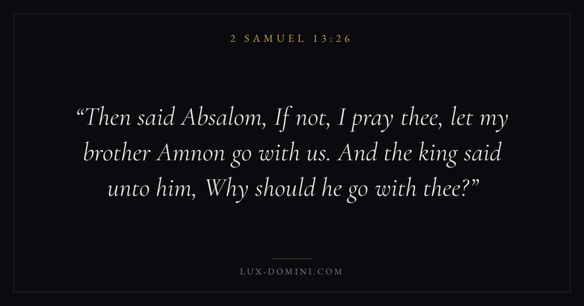 Then said Absalom, If not, I pray thee, let my brother Amnon go with us. And the king said unto him, Why should he go with thee?