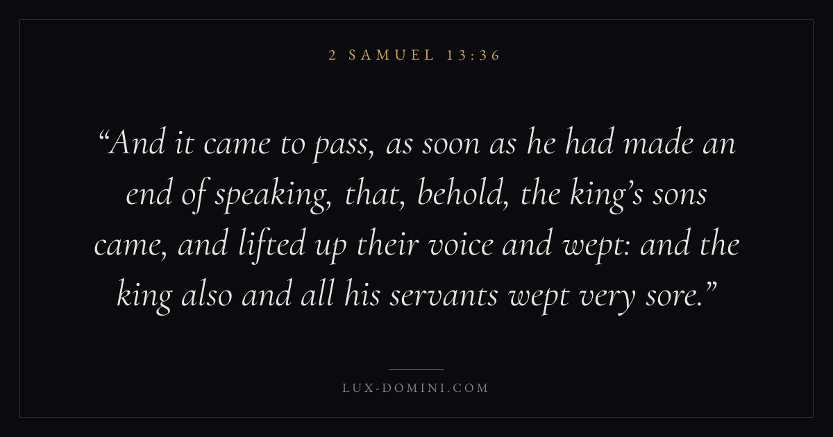 And it came to pass, as soon as he had made an end of speaking, that, behold, the king’s sons came, and lifted up their voice and wept: and the king also and all his servants wept very sore.