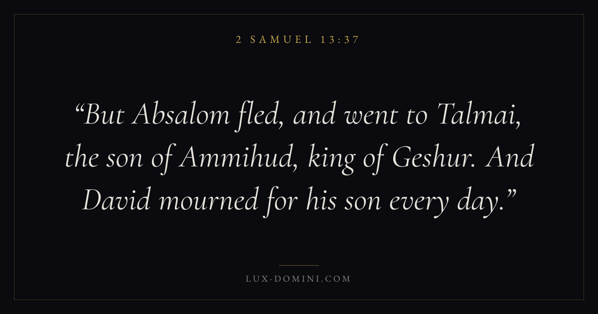 But Absalom fled, and went to Talmai, the son of Ammihud, king of Geshur. And David mourned for his son every day.