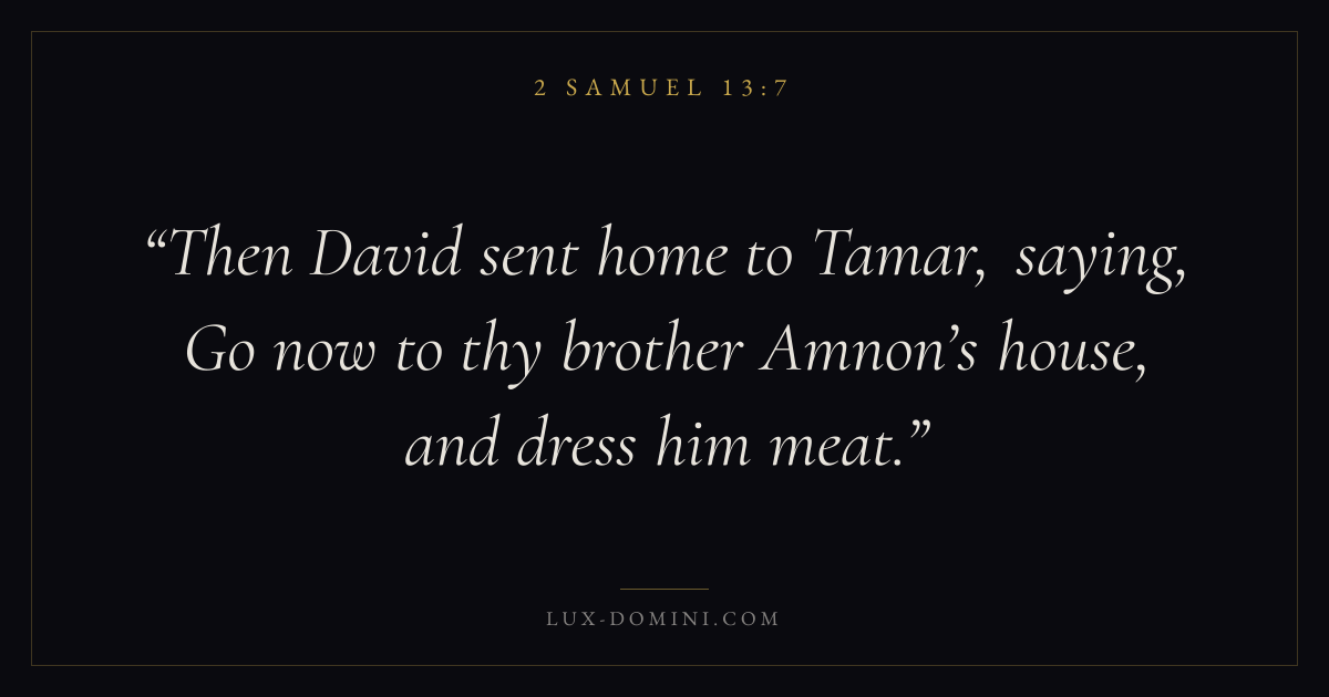Then David sent home to Tamar, saying, Go now to thy brother Amnon’s house, and dress him meat.
