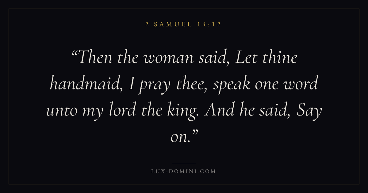 Then the woman said, Let thine handmaid, I pray thee, speak one word unto my lord the king. And he said, Say on.