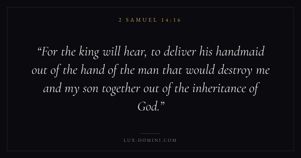 For the king will hear, to deliver his handmaid out of the hand of the man that would destroy me and my son together out of the inheritance of God.
