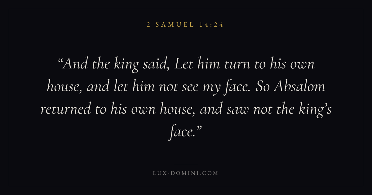 And the king said, Let him turn to his own house, and let him not see my face. So Absalom returned to his own house, and saw not the king’s face.