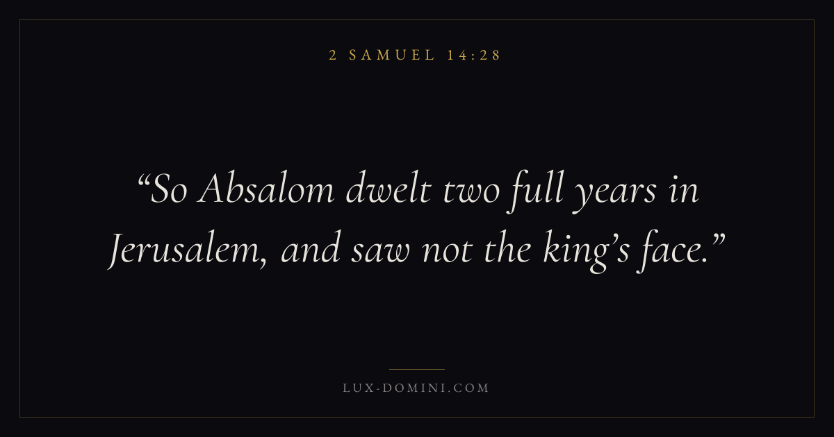 So Absalom dwelt two full years in Jerusalem, and saw not the king’s face.