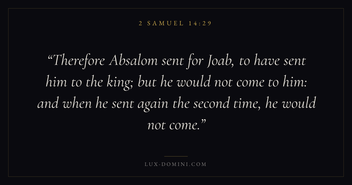 Therefore Absalom sent for Joab, to have sent him to the king; but he would not come to him: and when he sent again the second time, he would not come.