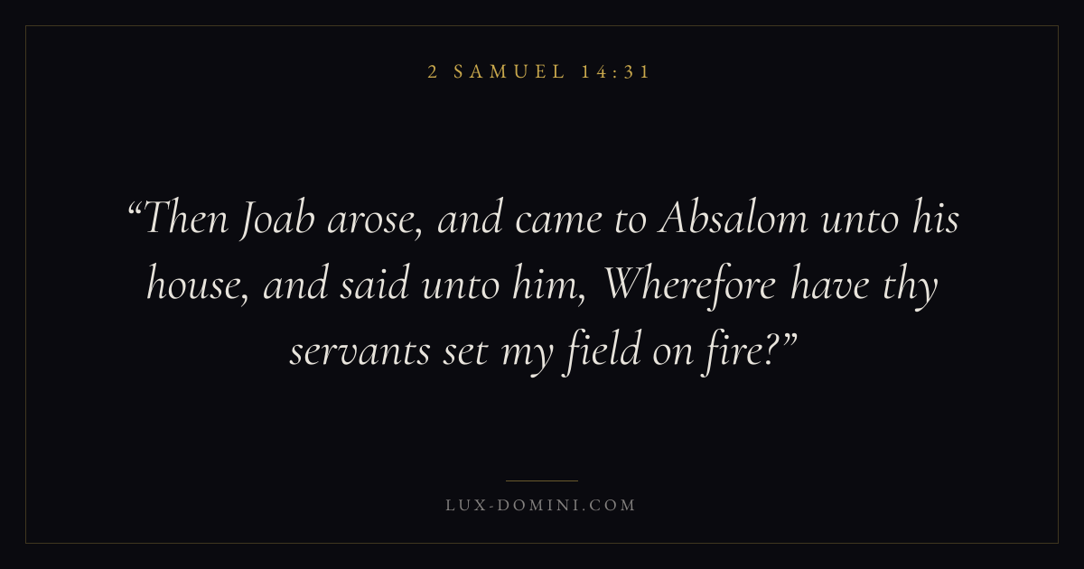 Then Joab arose, and came to Absalom unto his house, and said unto him, Wherefore have thy servants set my field on fire?