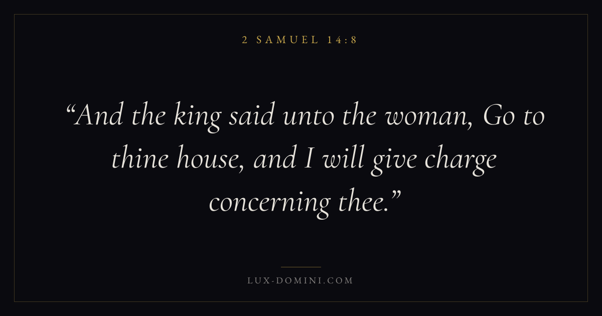 And the king said unto the woman, Go to thine house, and I will give charge concerning thee.