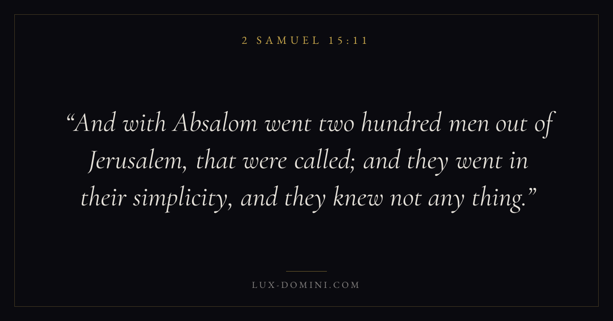 And with Absalom went two hundred men out of Jerusalem, that were called; and they went in their simplicity, and they knew not any thing.