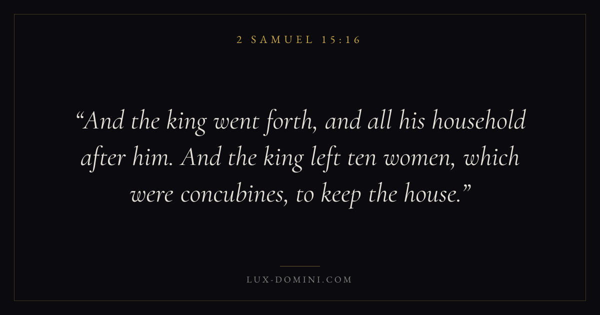 And the king went forth, and all his household after him. And the king left ten women, which were concubines, to keep the house.
