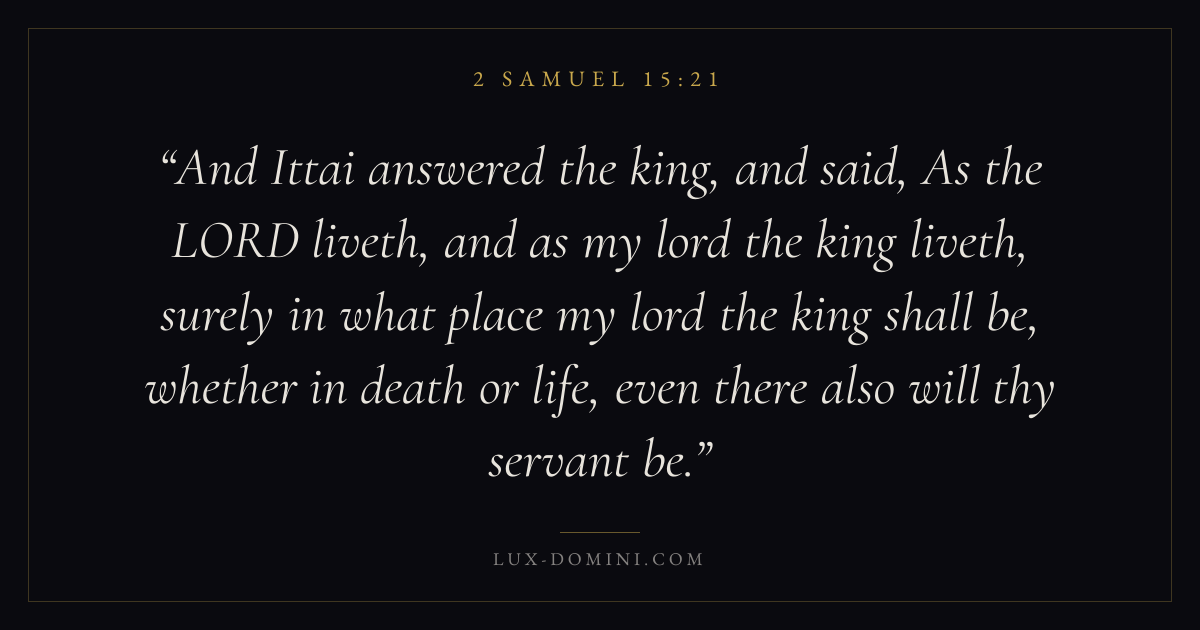 And Ittai answered the king, and said, As the LORD liveth, and as my lord the king liveth, surely in what place my lord the king shall be, whether in death or life, even there also will thy servant be.
