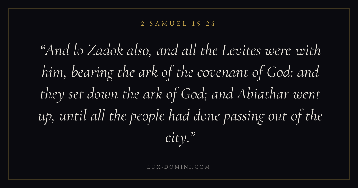 And lo Zadok also, and all the Levites were with him, bearing the ark of the covenant of God: and they set down the ark of God; and Abiathar went up, until all the people had done passing out of the city.