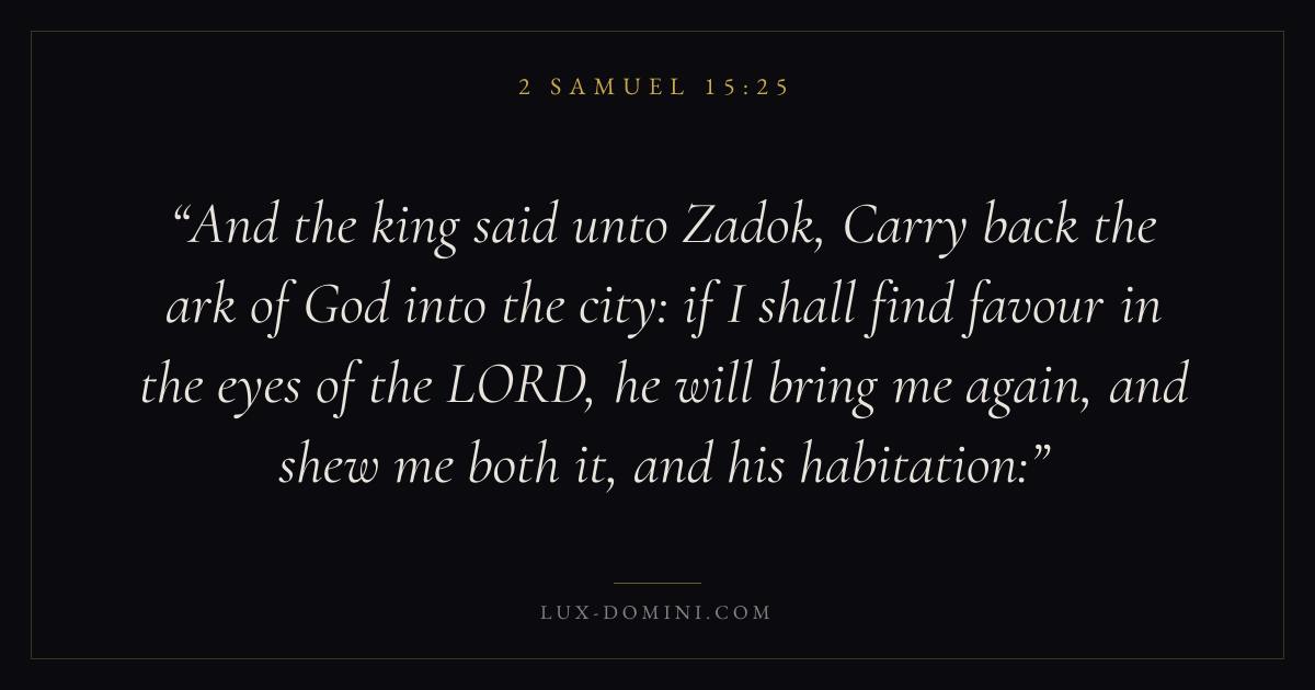 And the king said unto Zadok, Carry back the ark of God into the city: if I shall find favour in the eyes of the LORD, he will bring me again, and shew me both it, and his habitation: