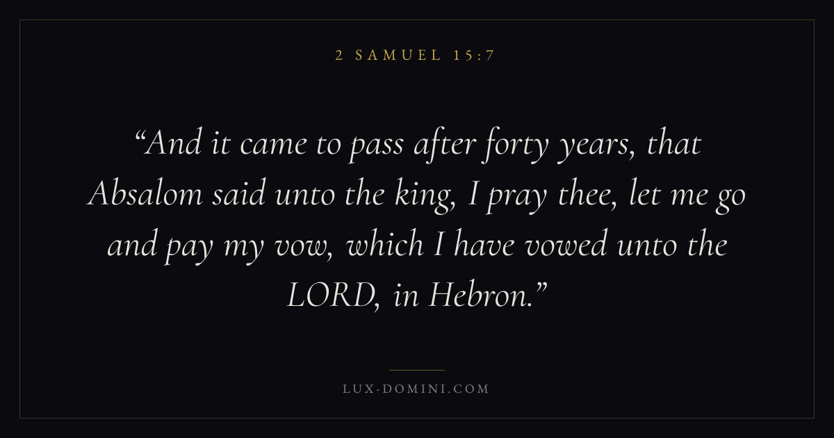 And it came to pass after forty years, that Absalom said unto the king, I pray thee, let me go and pay my vow, which I have vowed unto the LORD, in Hebron.