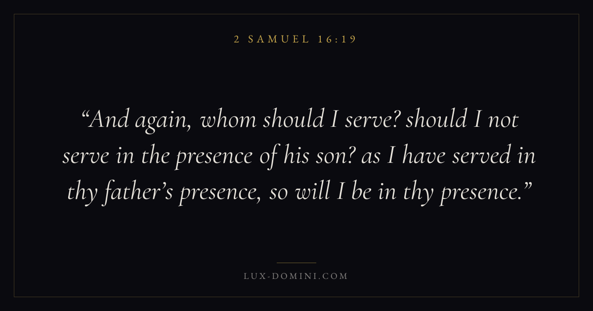 And again, whom should I serve? should I not serve in the presence of his son? as I have served in thy father’s presence, so will I be in thy presence.