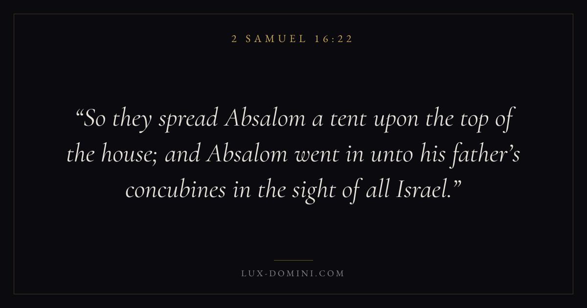 So they spread Absalom a tent upon the top of the house; and Absalom went in unto his father’s concubines in the sight of all Israel.