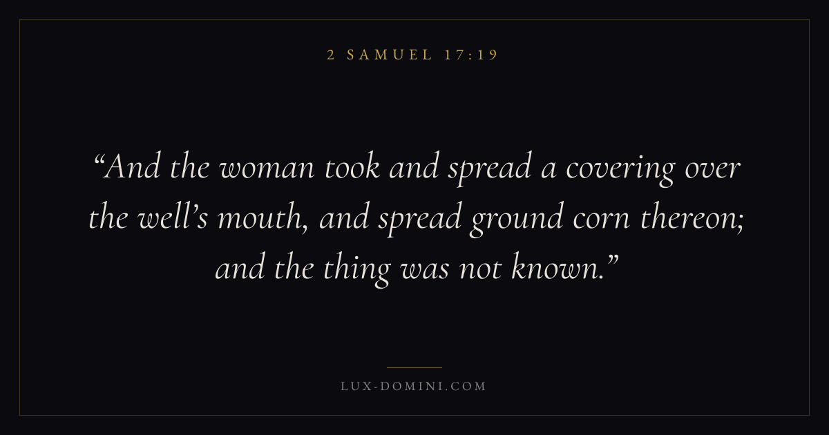 And the woman took and spread a covering over the well’s mouth, and spread ground corn thereon; and the thing was not known.