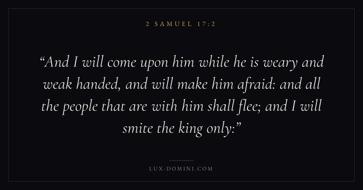 And I will come upon him while he is weary and weak handed, and will make him afraid: and all the people that are with him shall flee; and I will smite the king only: