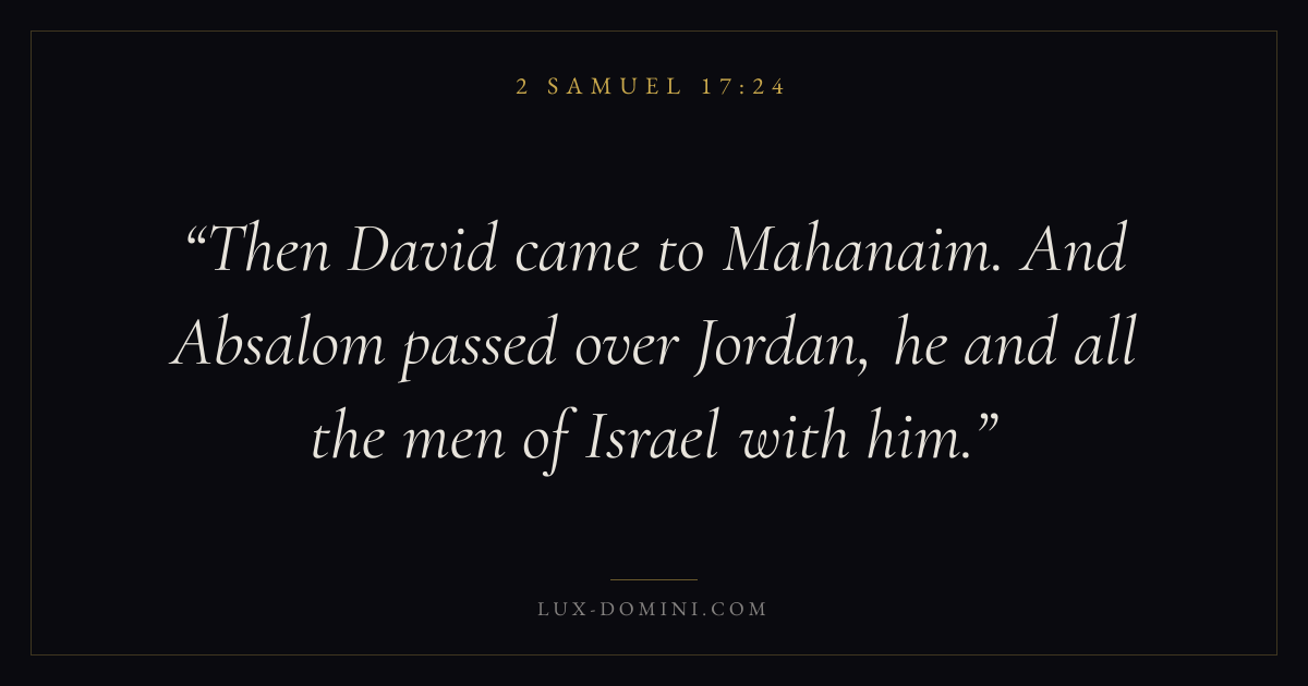 Then David came to Mahanaim. And Absalom passed over Jordan, he and all the men of Israel with him.