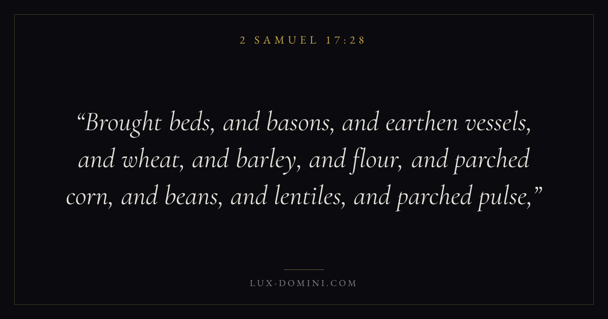 Brought beds, and basons, and earthen vessels, and wheat, and barley, and flour, and parched corn, and beans, and lentiles, and parched pulse,