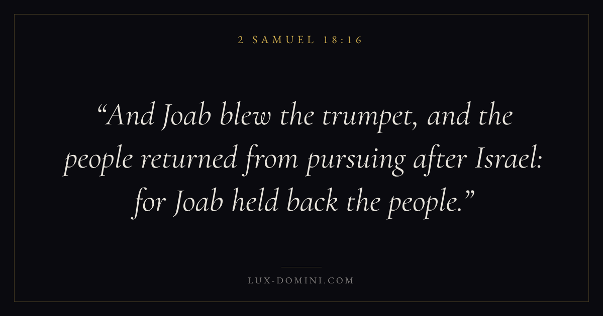 And Joab blew the trumpet, and the people returned from pursuing after Israel: for Joab held back the people.
