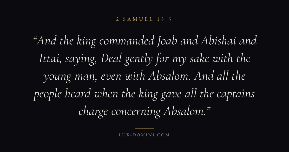 And the king commanded Joab and Abishai and Ittai, saying, Deal gently for my sake with the young man, even with Absalom. And all the people heard when the king gave all the captains charge concerning Absalom.