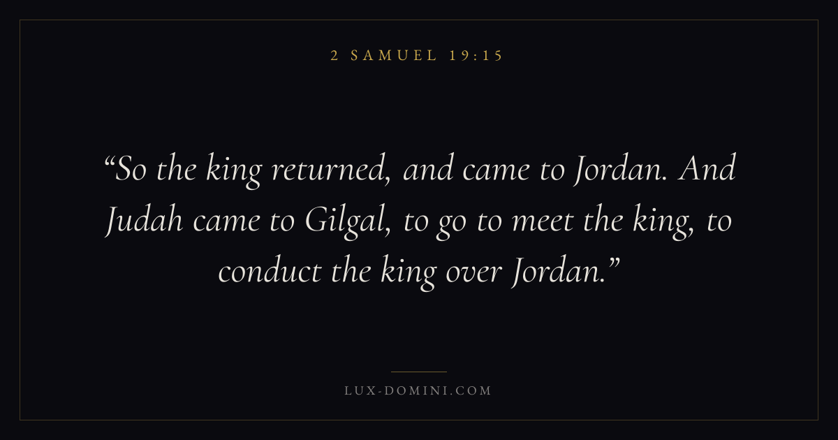 So the king returned, and came to Jordan. And Judah came to Gilgal, to go to meet the king, to conduct the king over Jordan.