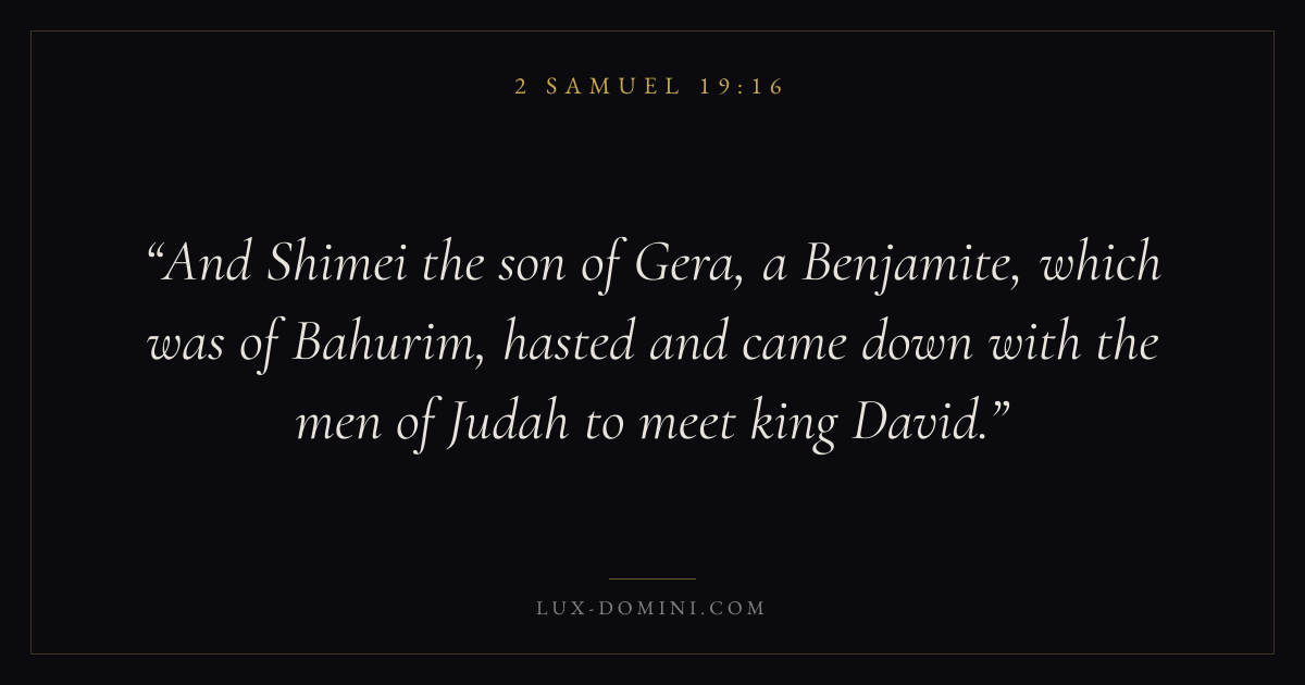 And Shimei the son of Gera, a Benjamite, which was of Bahurim, hasted and came down with the men of Judah to meet king David.