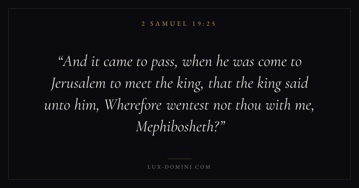 And it came to pass, when he was come to Jerusalem to meet the king, that the king said unto him, Wherefore wentest not thou with me, Mephibosheth?