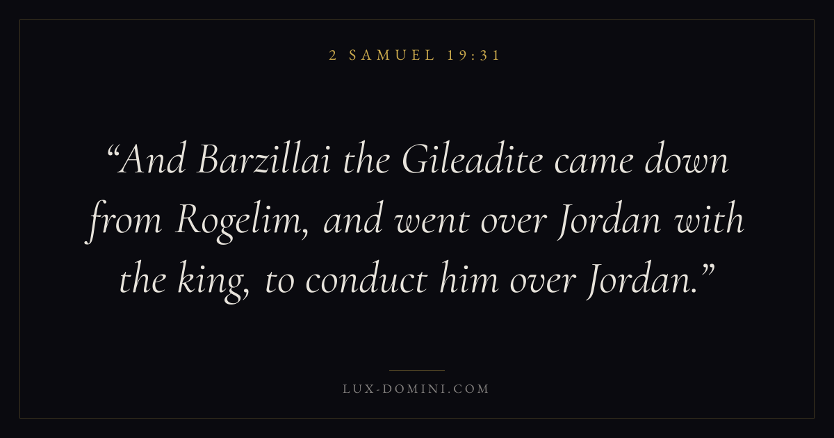 And Barzillai the Gileadite came down from Rogelim, and went over Jordan with the king, to conduct him over Jordan.