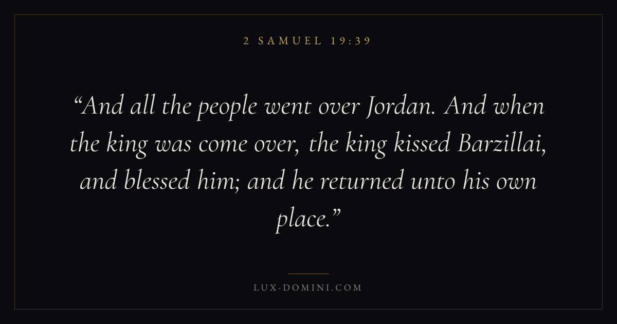 And all the people went over Jordan. And when the king was come over, the king kissed Barzillai, and blessed him; and he returned unto his own place.