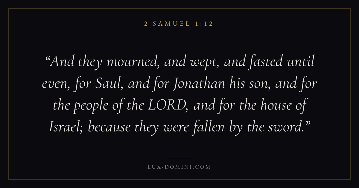 And they mourned, and wept, and fasted until even, for Saul, and for Jonathan his son, and for the people of the LORD, and for the house of Israel; because they were fallen by the sword.