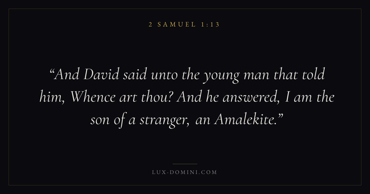 And David said unto the young man that told him, Whence art thou? And he answered, I am the son of a stranger, an Amalekite.