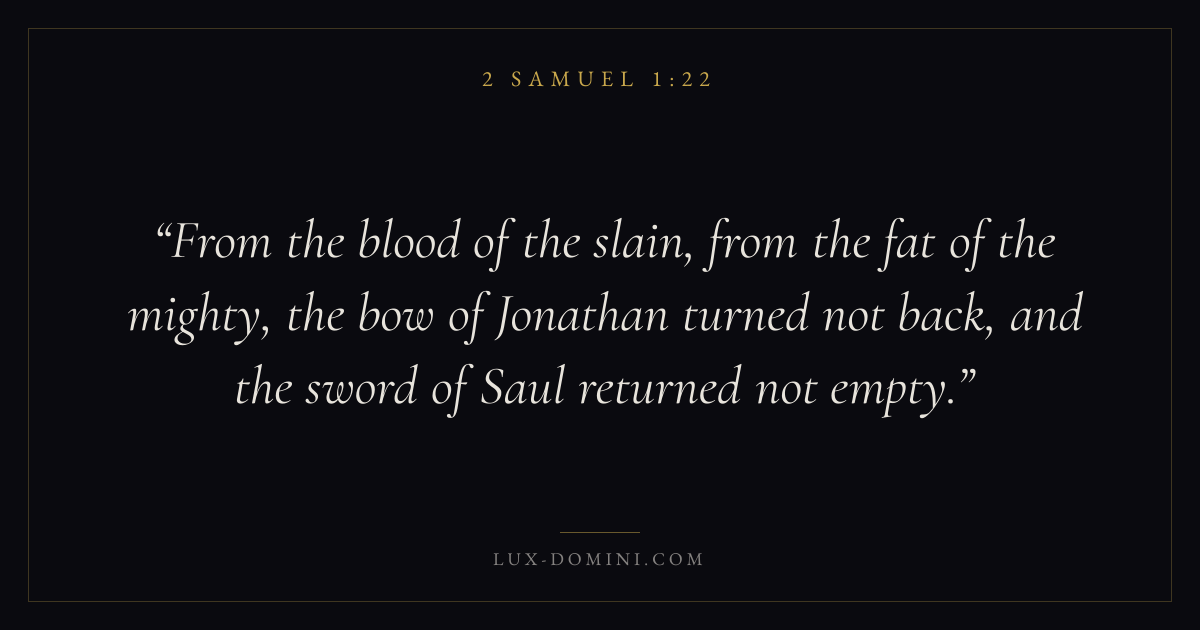 From the blood of the slain, from the fat of the mighty, the bow of Jonathan turned not back, and the sword of Saul returned not empty.