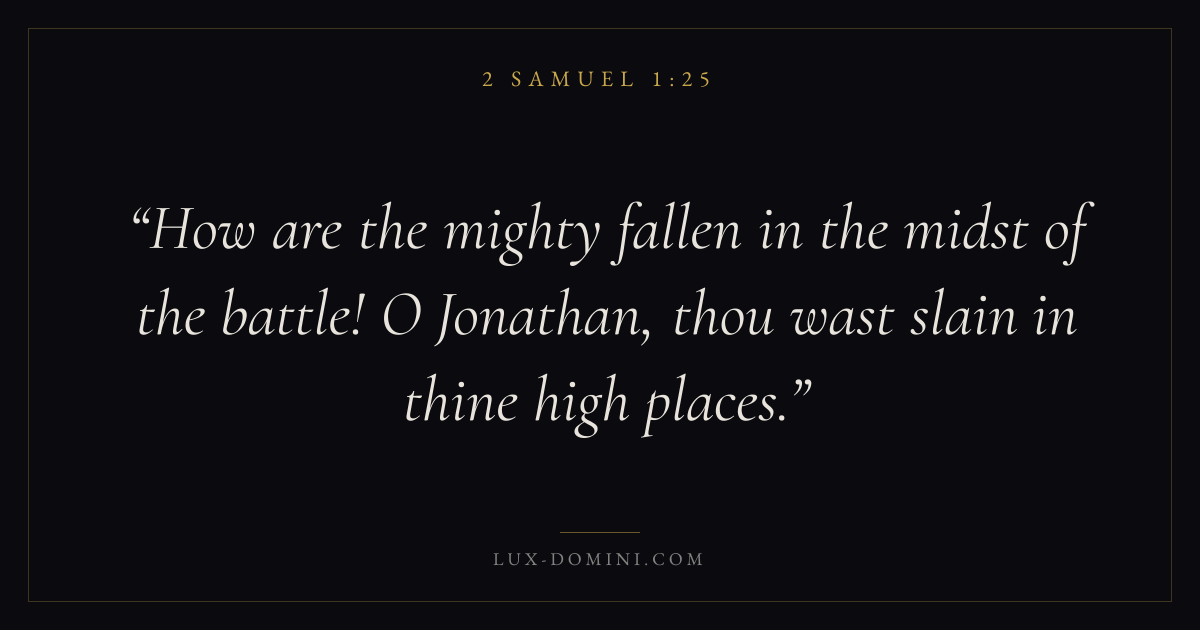 How are the mighty fallen in the midst of the battle! O Jonathan, thou wast slain in thine high places.