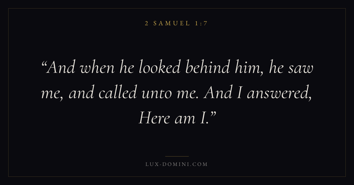 And when he looked behind him, he saw me, and called unto me. And I answered, Here am I.