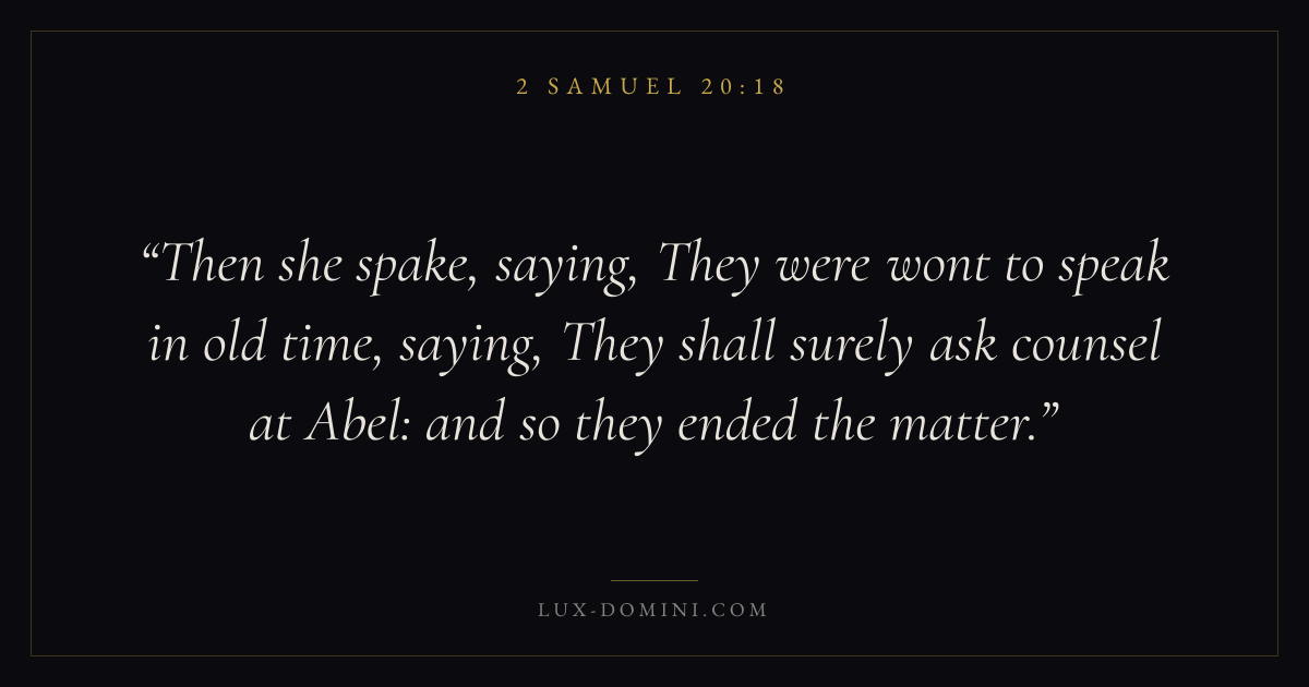 Then she spake, saying, They were wont to speak in old time, saying, They shall surely ask counsel at Abel: and so they ended the matter.
