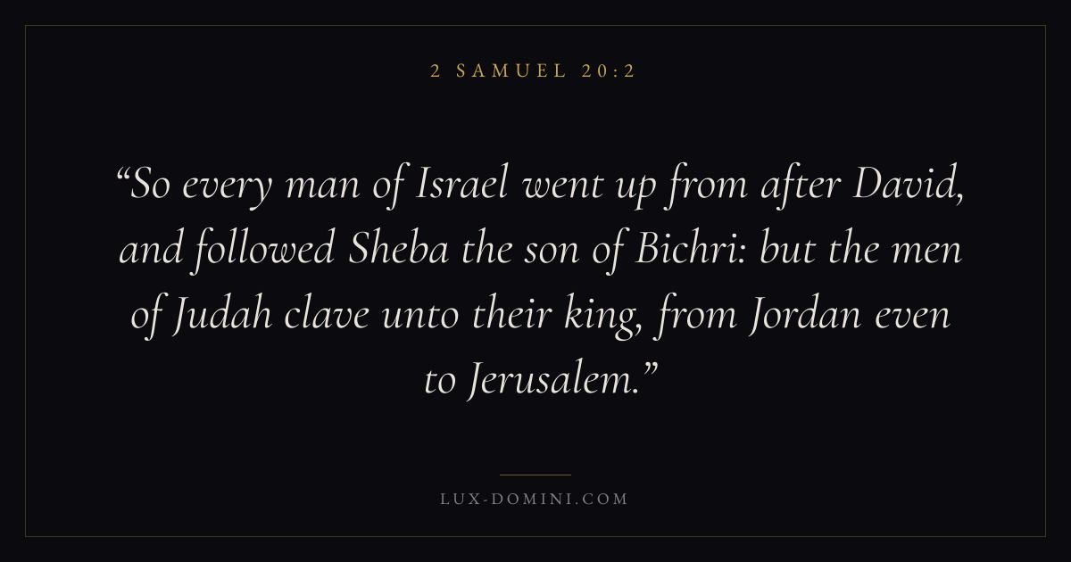 So every man of Israel went up from after David, and followed Sheba the son of Bichri: but the men of Judah clave unto their king, from Jordan even to Jerusalem.